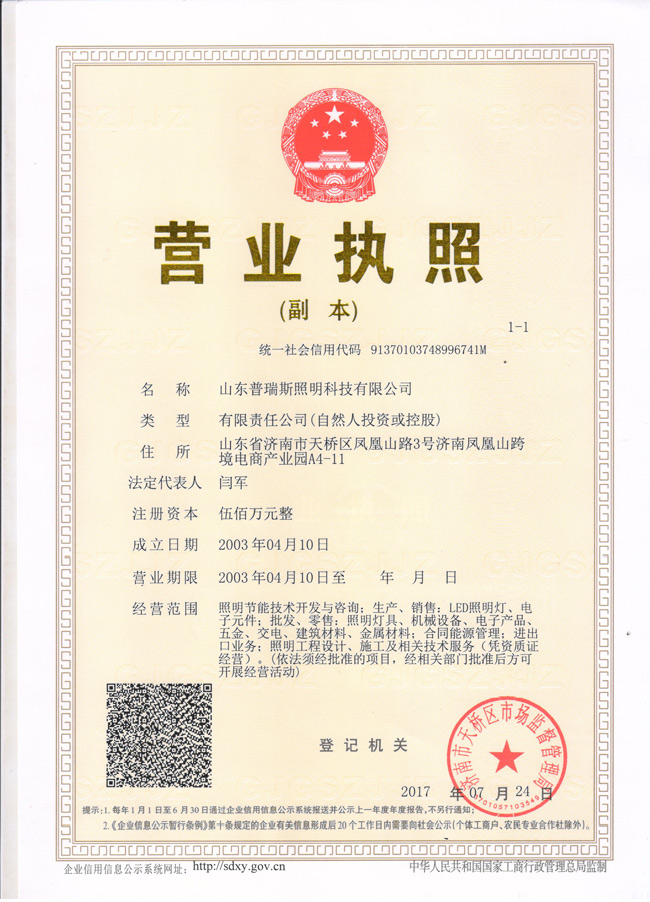 普瑞斯?fàn)I業(yè)執(zhí)照